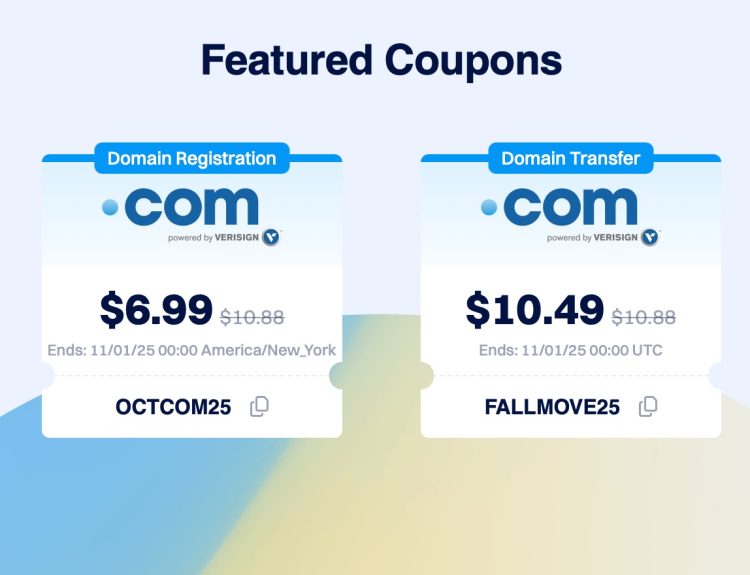 Nếu chưa từng sử dụng coupon giảm 1$ – BYEDADDY khi đăng ký/transfer tên miền ở đây, bạn sẽ có cơ hội được giảm giá thêm, mua tên miền .COM giờ chỉ còn giá 5.99$ mà thôi. Tương tự với những domain khác.